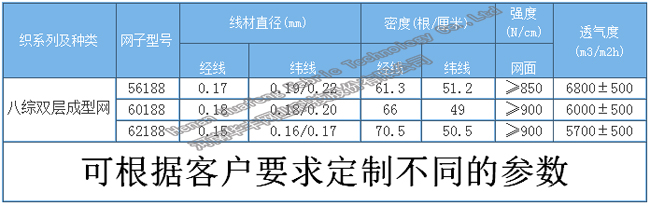 八棕雙層成型網(wǎng),成紙面均勻,成形效果好, 具有較高的縱橫向機械穩(wěn)定性,具有較好的脫水能力。